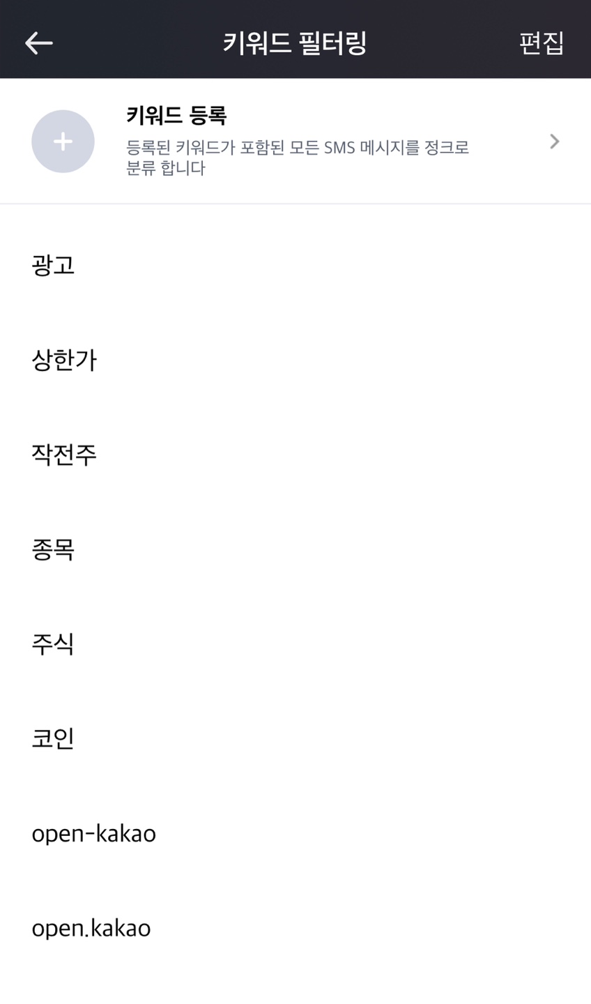 1. 후후 - 더보기 - 메시지 필터링 - 키워드 필터링