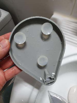 비슷한 형태의 비누받침이 많이 있다. 비누받침만 5~7개는 바꾼것 같다. 비슷한 디자인의 더 예쁜 제품도 많은데 왜 이것을 추천하냐면, 바로 흡착판이 3개 달려있기 때문. 더 예쁜 것은 흡착판이 1개의 형태일 것인데, 이것은 135g 대용량 비누를 견디지 못한다. 이 제품은 135g 뷰티바를 던져놓아도 잘 견디고 배수 잘되니 너~무 만족한다.
