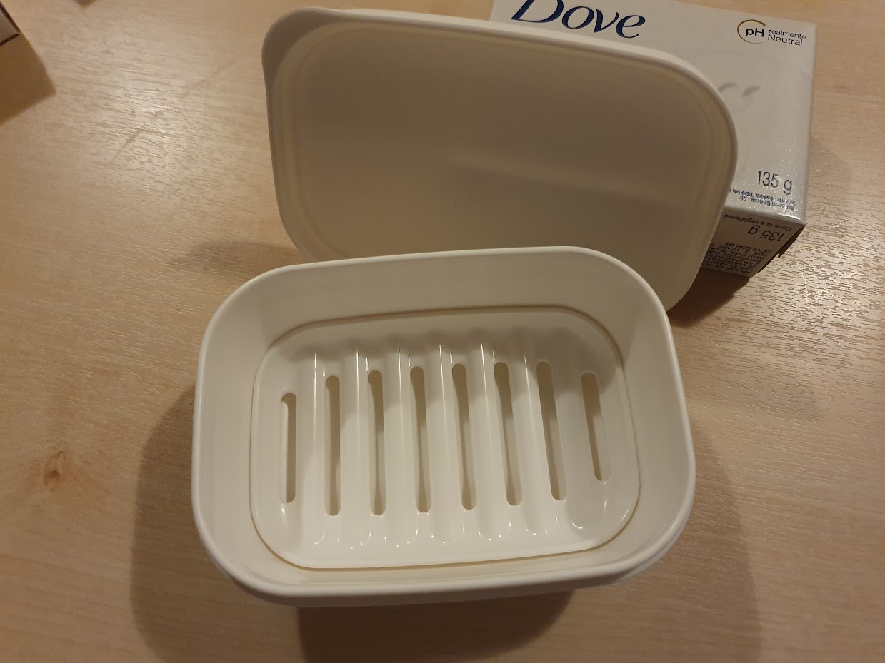 위 형태의 비누 받침은 물이 잘 빠질 수 밖에 없는 구조라고 생각 하기 쉽다. 그런데 막상 사용을 해보면 도브 비누가 물먹는 상태에 이르게 되고 결국 저 형태대로 비누가 녹아 붙게되는 상태가 되어 버린다. 물이 빠진다기보다 저 형태대로 녹아서 붙어버리게 되는 심각한 단점이 있다.