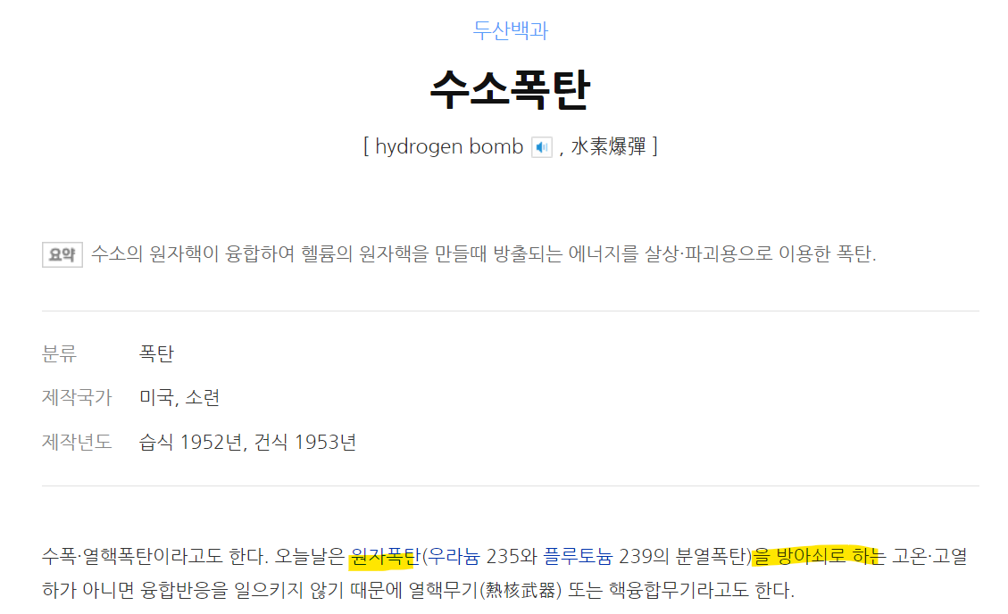 바라기를 고대하는 그것이 수소폭탄이기를.