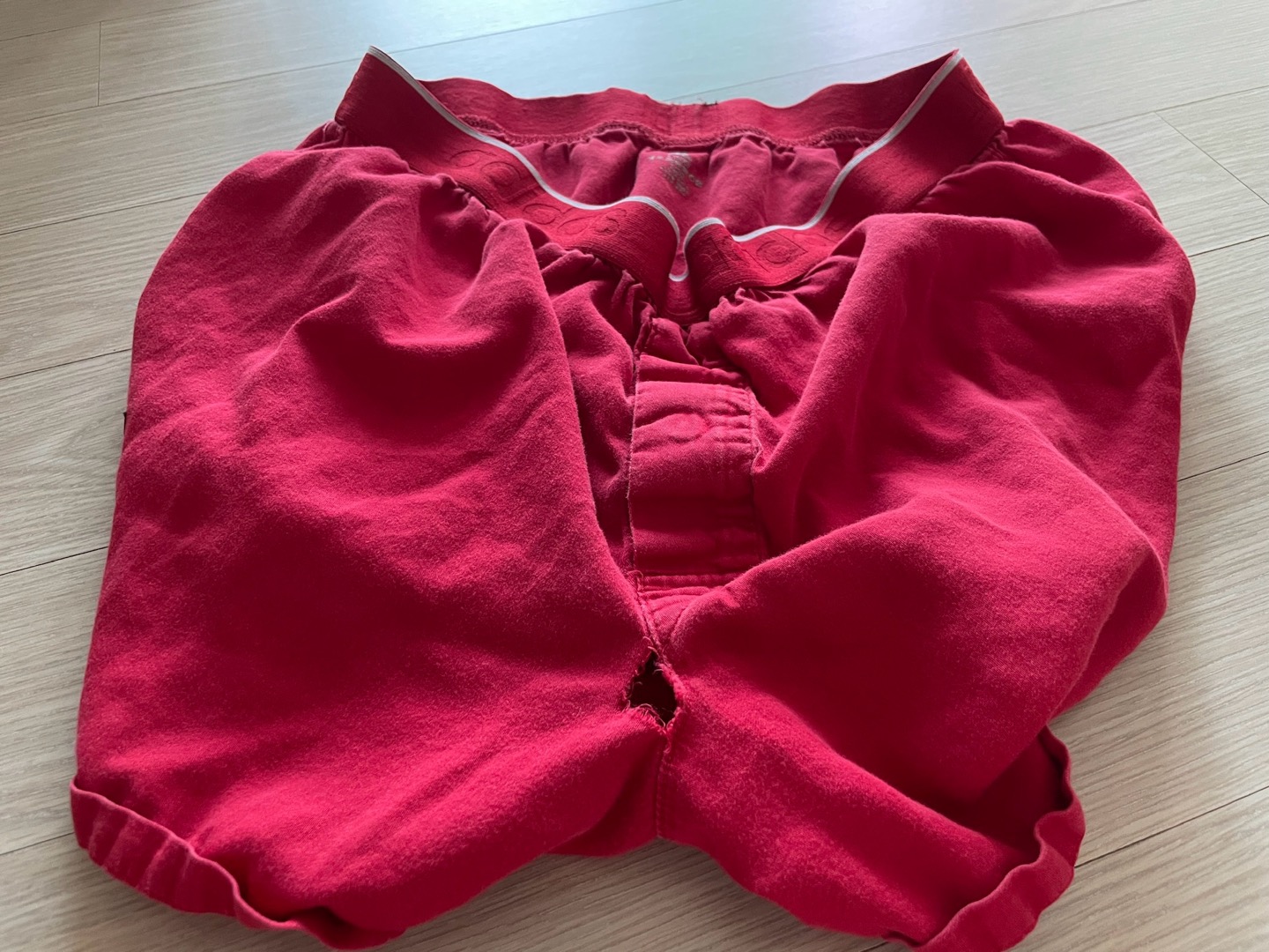 삭아서 구멍이 뚫린 팬티는 모두 같은 부위가 찢어졌다. 파랑색 팬티는 유달리 그 정도가 심했어서 아내와 아이들에게 팬티가 찢어졌다며 demonstration 을 위해 구멍을 벌려 보여주다가 아예 입을 수도 없는 수준으로 찢어져 버렸다. 그렇게 신나게 팬티를 찢었다.