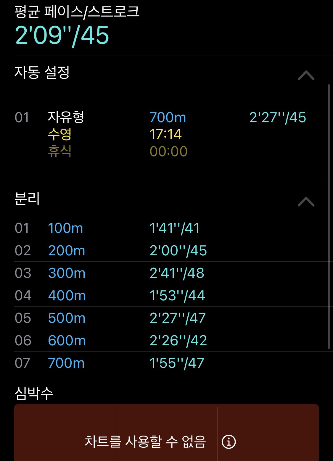 + Swim.com 으로 수영을 기록하면 휴식시간이 따로 구분되어 보여집니다
